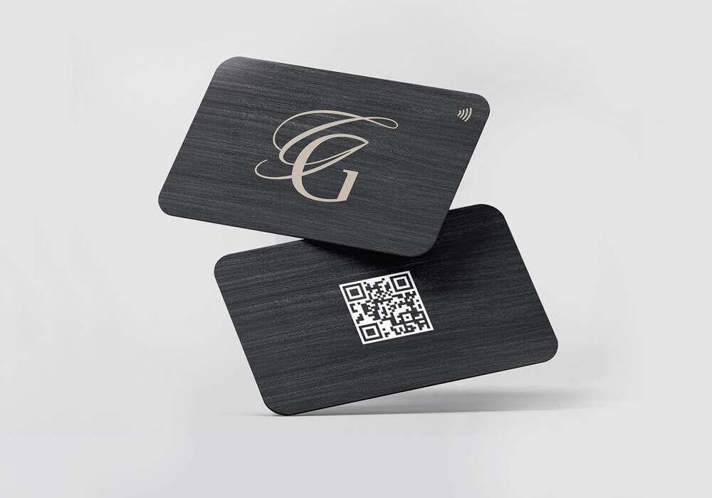 The business cards created as part of the luxury brand identity are not printed business cards in the traditional sense. As a tappable business card solution, contact details are transferred with a simple tap onto a smart phone. These new generation ‘smart’ business cards are not intended to be given away at all, meaning we only needed to produce a small quantity – great not only for the environment but also for our clients wallet!
