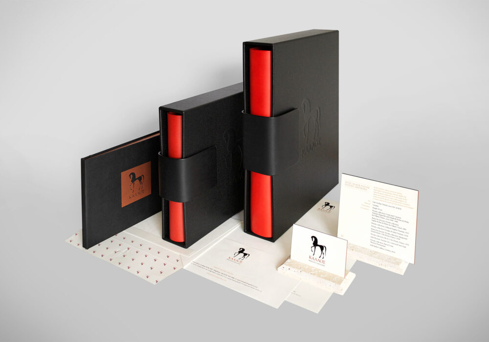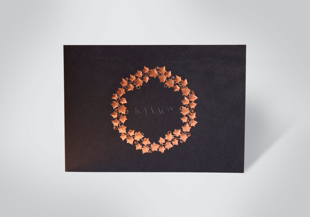 The high-profile antiquities collector, Baron Lorne Thyssen-Bornemisza, commissioned SO with the task of creating the luxury branding and entire marketing suite for his exquisite Greek antiquities gallery in one of Mayfair’s most prestigious streets. As a totally new entity, Kallos Gallery needed a cohesive suite of prestigious marketing collateral. The first taste of the luxury branding arrived in the form of a no-expense-spared custom invitation design. Delivered within a beautiful, soft-touch nubuk box inset with a burnished, engraved copper plaque, this invite caused quite a stir and drew compliments from many notable recipients across the globe.